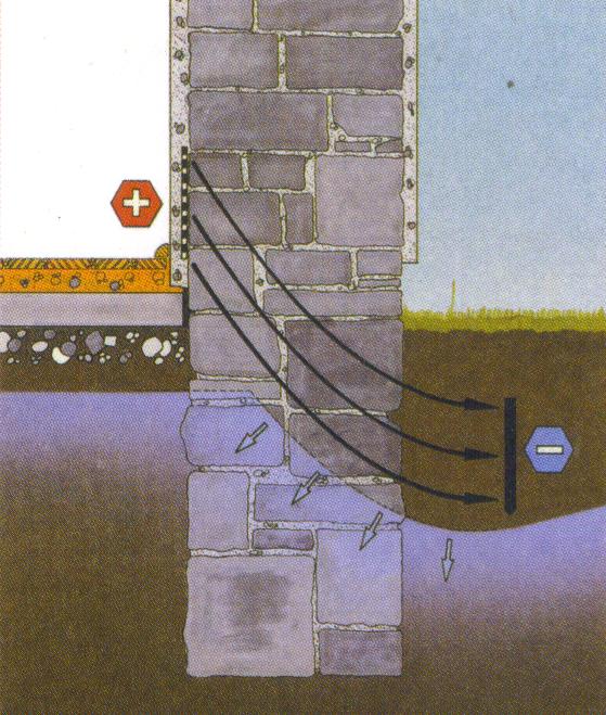 feuchtem Mauerwerk und einer bestimmten elektrischen Mauerpolarität, welche
